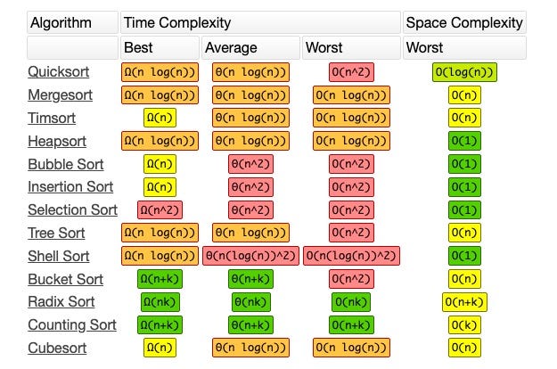 ╔═════════════════╦══════════════╗ ║ Function ║ Name ║ ╠═════════════════╬══════════════╣ ║ 1. Any constant ║ Constant ║ ║ 2. log n ║ Logarithmic ║ ║ 3. log^2 n ║ Log-square ║ ║ 4. √n ║ Root-n ║ ║ 5. N ║ linear ║ ║ 6. n * log n ║ Linearithmic ║ ║ 7. n ^ 2 ║ Quadratic ║ ║ 8. n ^ 3 ║ Cubic ║ ║ 9. n ^ 4 ║ Quartic ║ ║ 10. 2 ^ n ║ Exponential ║ ║ 11. e ^ n ║ Exponential ║ ║ 12. n! ║ n-Factorial ║ ╚═════════════════╩══════════════╝